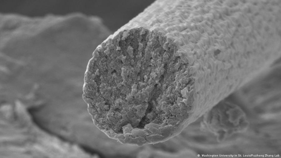 Luego utilizaron un proceso de hilado en húmedo para convertir las proteínas en fibras, con un diámetro de una décima parte del grosor del cabello humano.