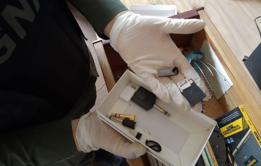 Como resultado de los allanamientos, los funcionarios decomisaron 1.400 dólares, 17 teléfonos celulares, ocho computadoras (de escritorio y portátiles), ocho prendrives, tres discos rígidos externos, una cámara fotográfica, 11 tarjetas de memoria, DVD y CD y demás elementos de interés para la causa.