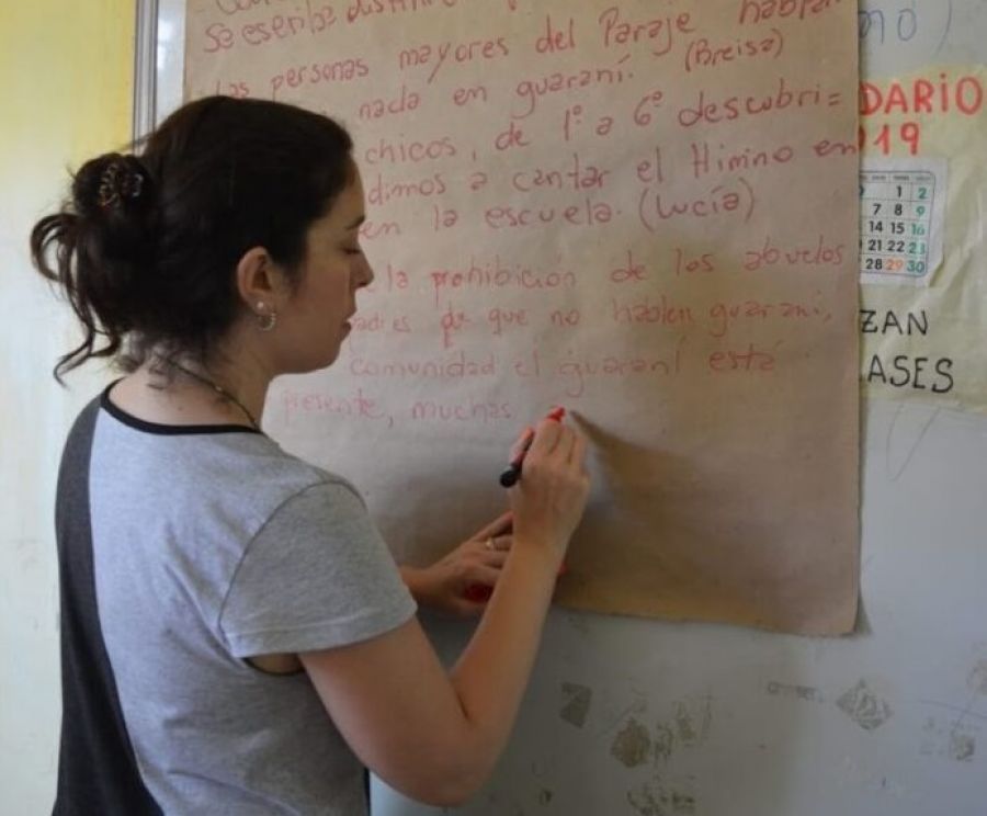 La enseñanza del guaraní en Corrientes tiene la característica de que quienes la llevan adelante deben “inventar” su práctica, desarrollando sus contenidos, materiales y estrategias pedagógicas, sin haber tenido una formación docente específica para este cometido.