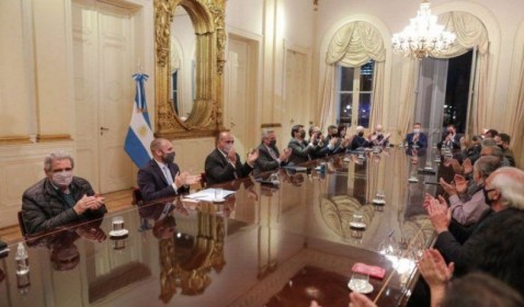La conferencia se realiza en la Sala de Conferencias. Previamente, Manzur y Vizzotti mantuvieron una reunión de trabajo en la jefatura de Gabinete.