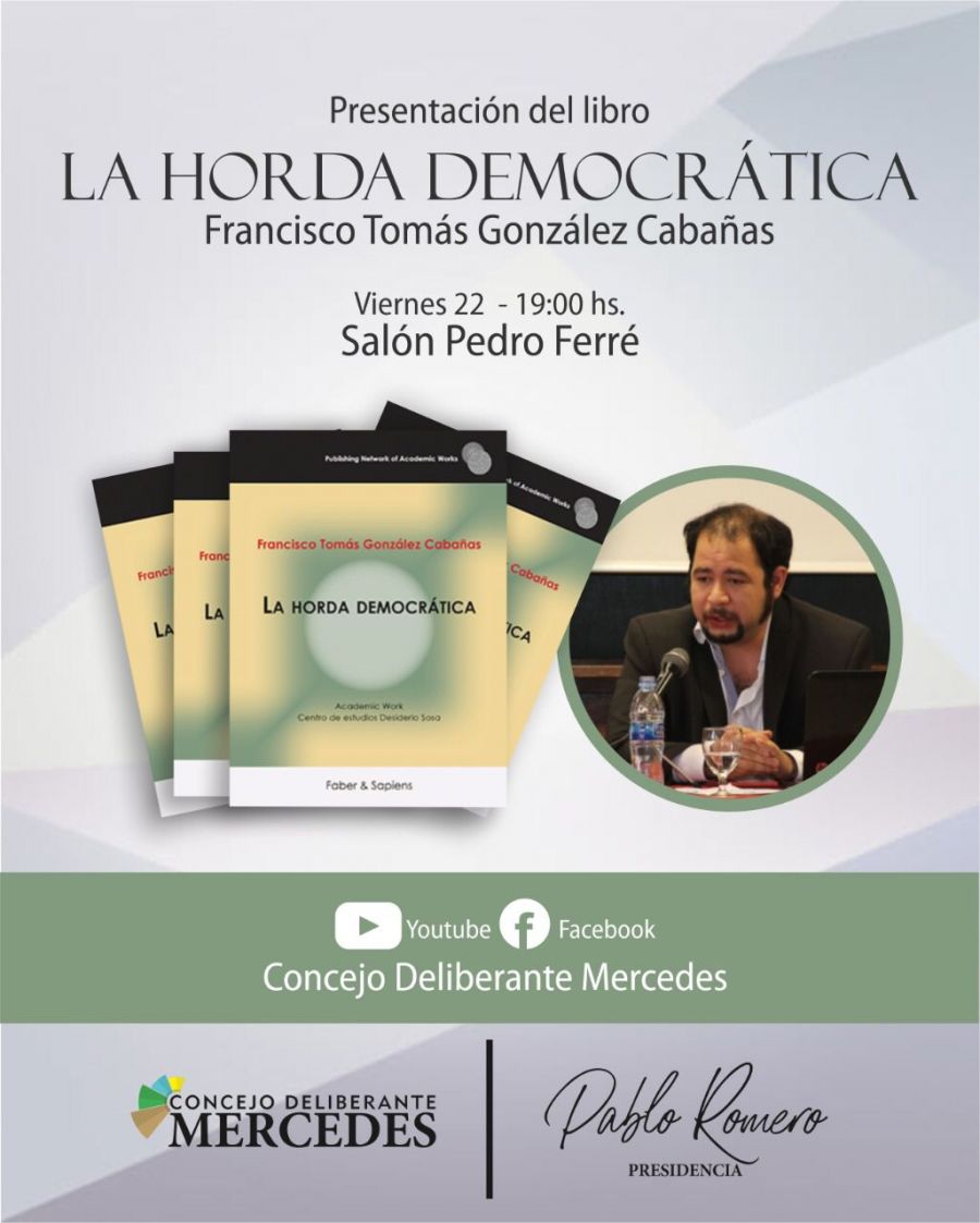 “Venimos de dar conferencias virtuales en Santa Fé, en Uruguay, en Costa Rica, en Honduras y en Ecuador, se están programando otras presentaciones en México de las mismas características y seguramente Mercedes será el puntapié inicial para continuar en Corrientes estos ciclos para contar con una democracia mejor para todos y cada uno de los correntinos y correntinas que habitamos esta bendita tierra que antes fue llamada por nuestros antepasados la tierra sin mal” finalizó el escritor que el próximo viernes 22 de octubre presentará en el salón Pedro Ferré del concejo deliberante, junto al presidente del cuerpo, Pablo Romero su último ensayo (el séptimo) intitulado “La horda democrática” publicado por el sello editorial Ápeiron de Madrid, España.