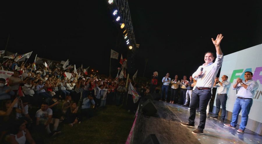 El acto inició pasadas las 20 en el estadio, al aire libre, 27 de Agosto, donde una multitud se hizo presente para escuchar a los candidatos de ECO+Vamos Corrientes.