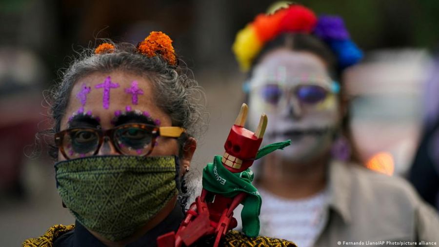 Alrededor de medio centenar de mujeres maquilladas de catrina, la representación folclórica de la muerte en México, caminaron este lunes (01.11.2021) por el centro de la capital en el Día de Muertos para exigir justicia por las mujeres asesinadas en el país y colocaron una enorme ofrenda para recordarlas.