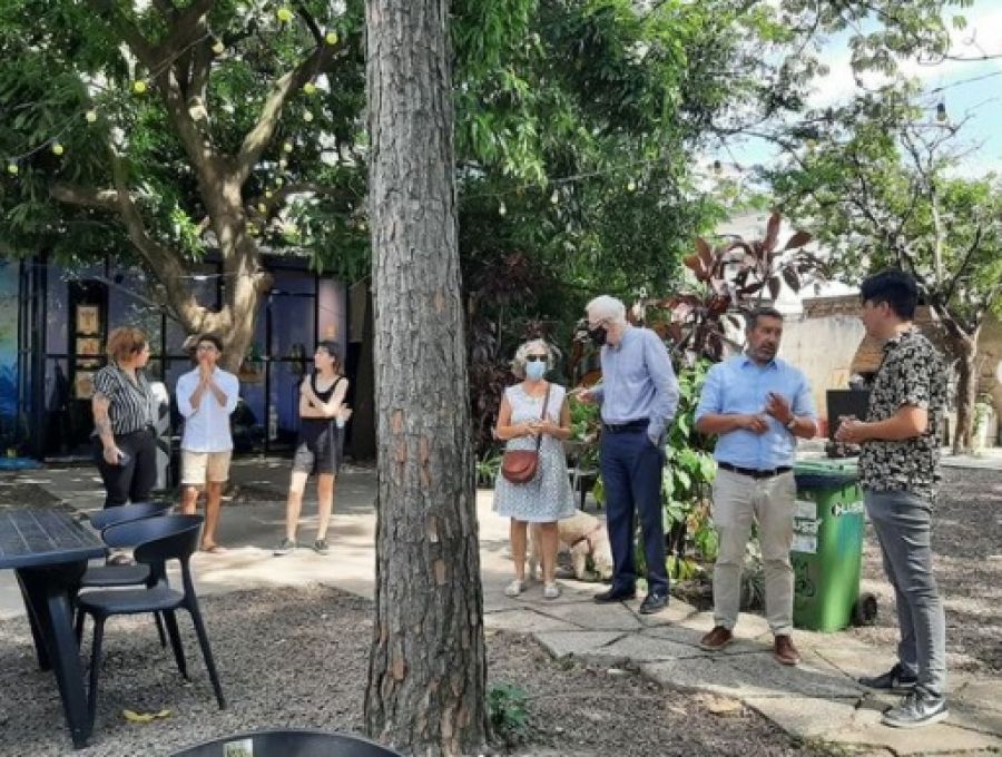 El presidente del Instituto de Cultura de la Provincia, Arq. Gabriel Romero junto al Director de Artes Escénicas Eduardo Sívori y la responsable del Área de Industrias Culturales Maia Eirin, visitaron el Patio Cultural, llamado ahora "Espacio Mariño".