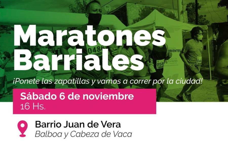 Bajo el lema “¡Ponete las zapatillas y vamos a correr por la ciudad!”, este sábado se realizará una nueva edición de las Maratones Barriales que organiza la Municipalidad de Corrientes. La octava fecha del campeonato 2021 se correrá el sábado desde las 16 en el barrio Juan de Vera para las distancias de 2 y 5 kilómetros.