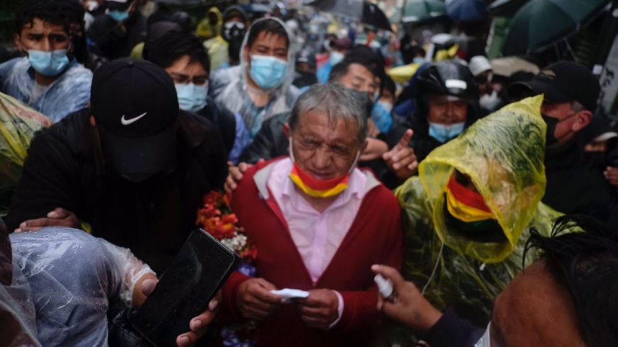 Ni siquiera la lluvia que cayó en la tarde frenó estas movilizaciones, aunque una de ellas, la liderada por Arias, se topó en la plaza Mayor de San Francisco con un grupo de militantes del MAS y funcionarios estatales que buscaban impedir la marcha por la fuerza.