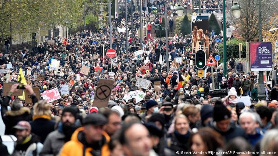 Miles de personas recorrieron este domingo las calles de Bruselas en protesta contra las medidas para contener el coronavirus y la posible obligatoriedad de la vacunación.