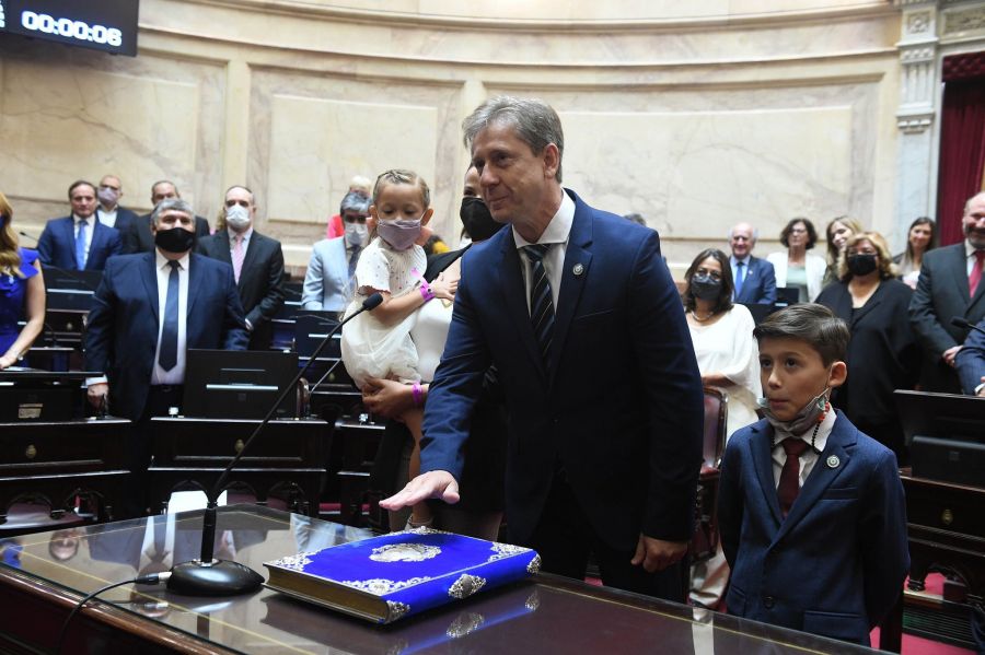 La ceremonia se extendió durante una hora y los senadores prestaron juramento ante el estrado acompañados por familiares, que previamente debieron hisoparse y tomarse la temperatura como parte del protocolo anticovid antes de ingresar al recinto.