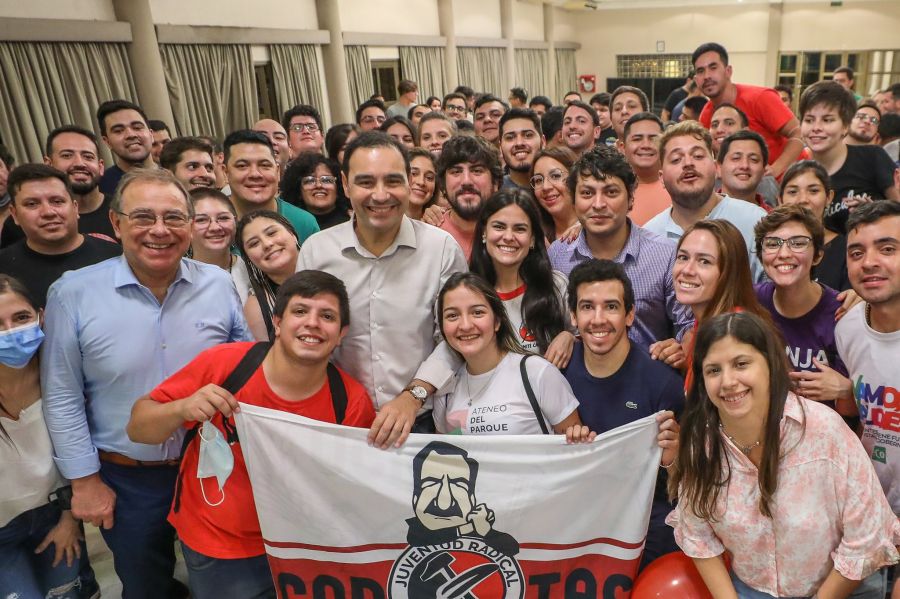 "Junto a la presidenta de la @jrnacional, @valeriapavonok, nos reunimos con los militantes de la Juventud Radical de #Corrientes Flag of Monaco Además de realizar un balance del gran 2021 a nivel político partidario, dialogamos sobre la Convención Nacional y los proyectos para 2022", tuiteó el gobernador.