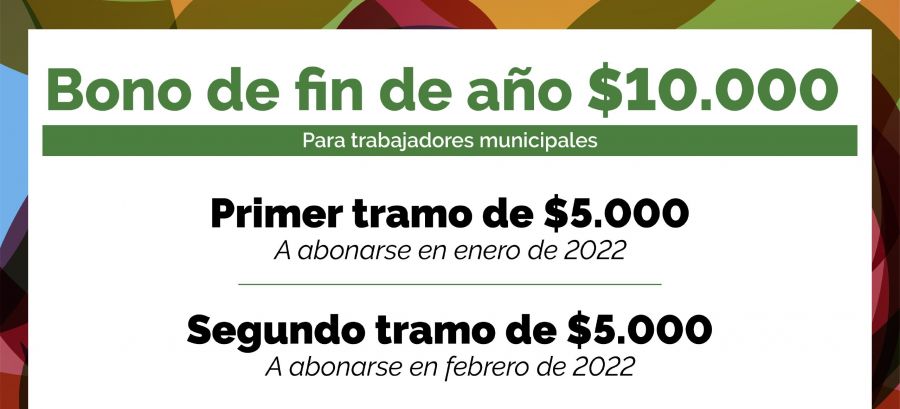 La medida, de carácter extraordinario, se dividirá en dos pagos: $ 5.000 en enero y los $ 5.000 complementarios en febrero. El anuncio fue dado a conocer por el titular del Departamento Ejecutivo Municipal (DEM) una vez finalizada la última reunión de la Comisión Paritaria Permanente del año, con representantes de la Asociación de Obreros y Empleados Municipales (AOEM),