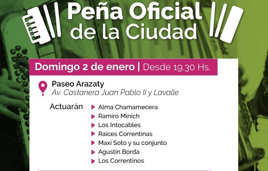Una nueva edición de la Peña Oficial de la Ciudad, la primera del año, tendrá lugar este domingo 2 de enero a partir de las 19.30 en el Paseo Arazaty, ubicado en la intersección de las avenidas Costanera y 3 de abril.