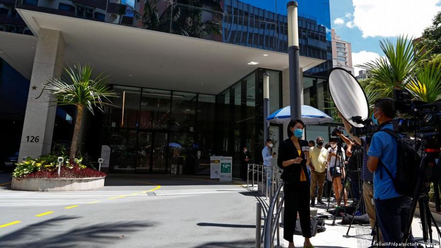Foto: Periodistas se reúnen frente al hospital Vila Nova Star, en Sao Paulo, donde el presidente brasileño Bolsonaro está siendo tratado.