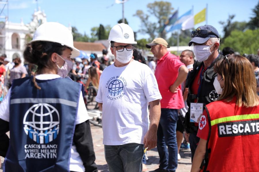 La presidenta de la Comisión, Sabina Frederic, dispuso la convocatoria de voluntarias y voluntarios de Cascos Blancos priorizando especialistas en logística, primeros auxilios y personal entrenado para el ejercicio de primeros socorros. De este modo se da continuidad a un trabajo primordial dentro de las diversas misiones y funciones del organismo, tal como ocurrió anteriormente en la Marcha del Orgullo y durante la peregrinación del día de la Virgen.