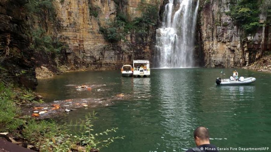 Un acantilado se desprendió y cayó sobre tres lanchas que transportaba un grupo de turistas que circulaban en el Lago de Furnas, en Capitólio, Minas Gerais de Brasil. Las imágenes que circularon por redes sociales muesta el impactante momento que provocó siete muertos, 32 heridos y tres desaparecidos, según confirmaron los cuerpos de rescate.
