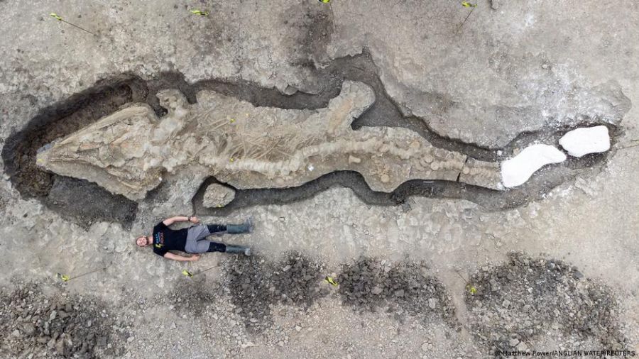 Diez metros de largo y un cráneo que pesa una tonelada son las dimensiones de un fósil de ictiosaurio encontrado por investigadores británicos en un embalse de East Midlands. Se trata del mayor y más completo fósil de este tipo jamás descubierto en Gran Bretaña, según informó este lunes (10.01.2022) la agencia de noticias británica PA.