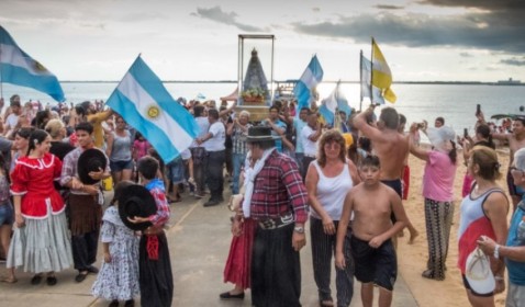 La imagen de la patrona provincial arribó al lugar luego de ser trasladada por la Prefectura en las aguas del Paraná desde la Basílica de Itatí. Al llegar a Corrientes se realizó una caravana desde la zona conocida como “El Águila” y pasando por Av. Armenia, Poncho Verde, calle Tucumán, Costanera, entre otras.