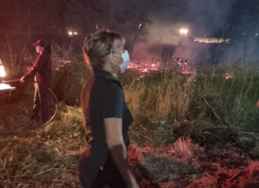La titular del Ministerio de Industria de la Provincia Mariel Gabur estuvo en el lugar participaron activamente con las cuadrillas que trabajaron para combatir las llamas junto al intendente Valdés y al subsecretario Barros Perkins. Se realizaron cortafuegos que permitieron controlar las llamas.