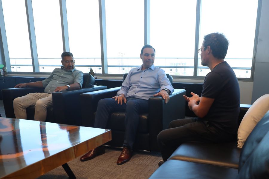 El encuentro tuvo lugar en las oficinas que el mandatario correntino posee en el Centro Administrativo del barrio San Benito, donde estuvo acompañado por el presidente del Instituto de Cultura, Gabriel Romero.