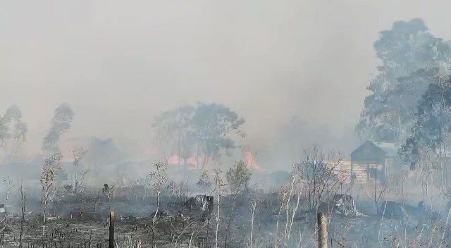 A las 19 del vienres se conocieron las primeras informaciones de un incendio de proporciones sobre la ruta 27 que ocasionó quema de viviendas y un aserradero y vivero