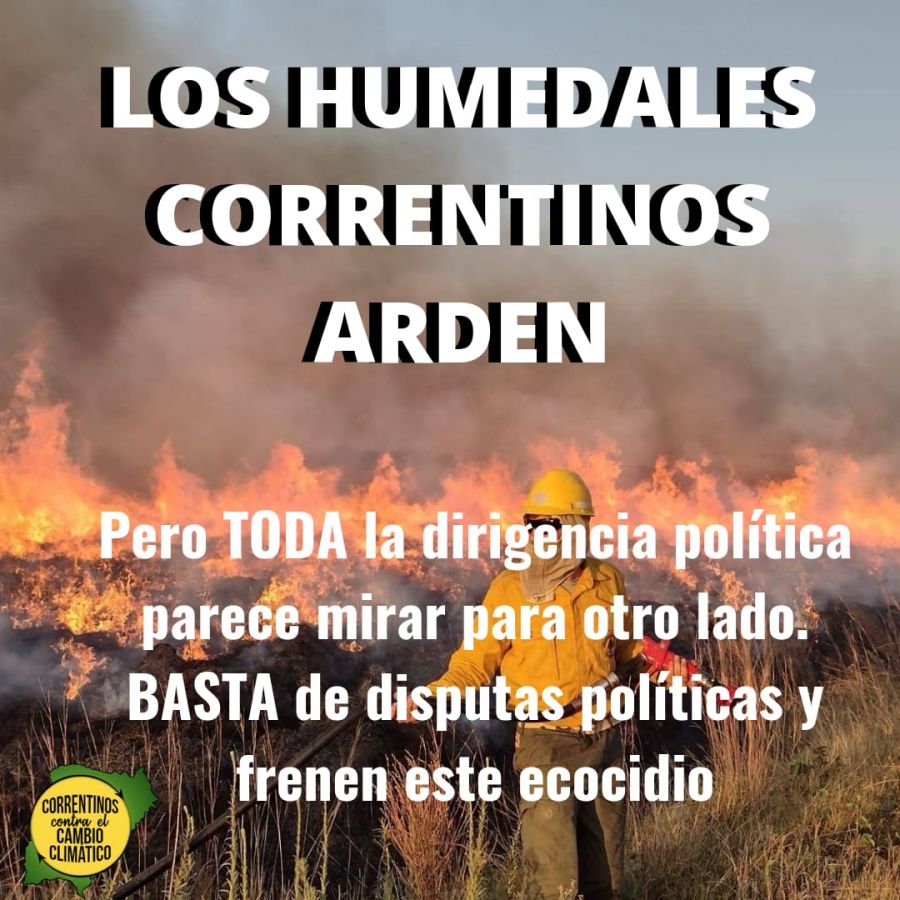 "Como Organización Ambiental de Corrientes estamos cansados de la inacción y la falta de respuestas ante el avance del fuego que arrasa cada rincón de nuestra Provincia, incluso llegando hoy, nuevamente a nuestros Esteros del Iberá", expresan.