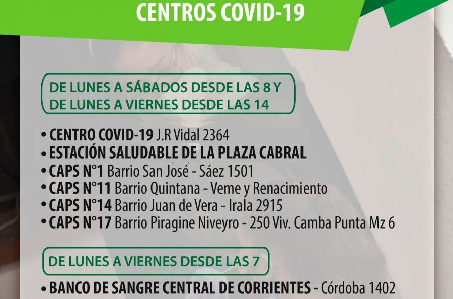 Por otra parte los Centros de Covid-19 que se encuentran funcionando donde además de hisopados se brinda orientación sobre el coronavirus, son estos desde el lunes 7 de febrero
