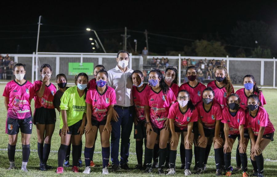 El gobernador de la provincia habilitó esta noche la nueva cancha de fútbol femenino, denominada Lettizia Alcaraz, embajadora deportiva alvearense que se supo desempeñar en rugby y fútbol.