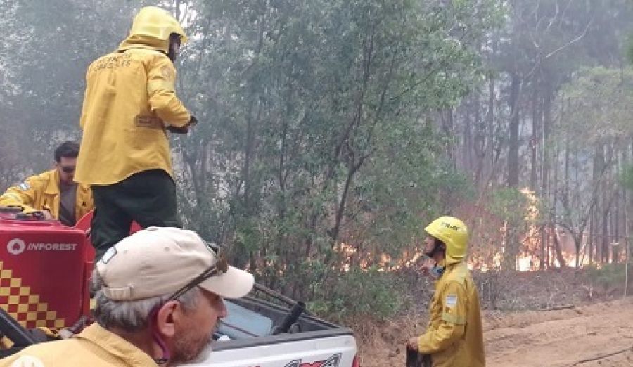 "El fuego afecta forestaciones con riesgo para sectores de viviendas" se señala