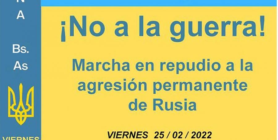 Con los lemas de “¡No a la guerra!” y “Estamos con Ucrania”, la manifestación es convocada por la Representación Central Ucrania (RCA), que representa y agrupa a todas las instituciones de la comunidad de ese país en la Argentina. Tendrá lugar en la plaza Vicente López del barrio porteño de Recoleta, a las 17 del viernes.