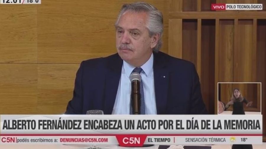 “Cada 24 de marzo, que es un día emblemático para nosotros, la Argentina se une para repudiar lo que ocurrió. Sobre eso no tenemos diferencias ni distancias. Algunos son más progresistas, otros más peronistas y otros de otro color, pero todos sabemos que hubo una dictadura que persiguió, mató, asesinó, condenó al exilio, hizo desaparecer y postergó a la Argentina como nunca lo hizo otro gobierno, señaló Alberto Fernández.