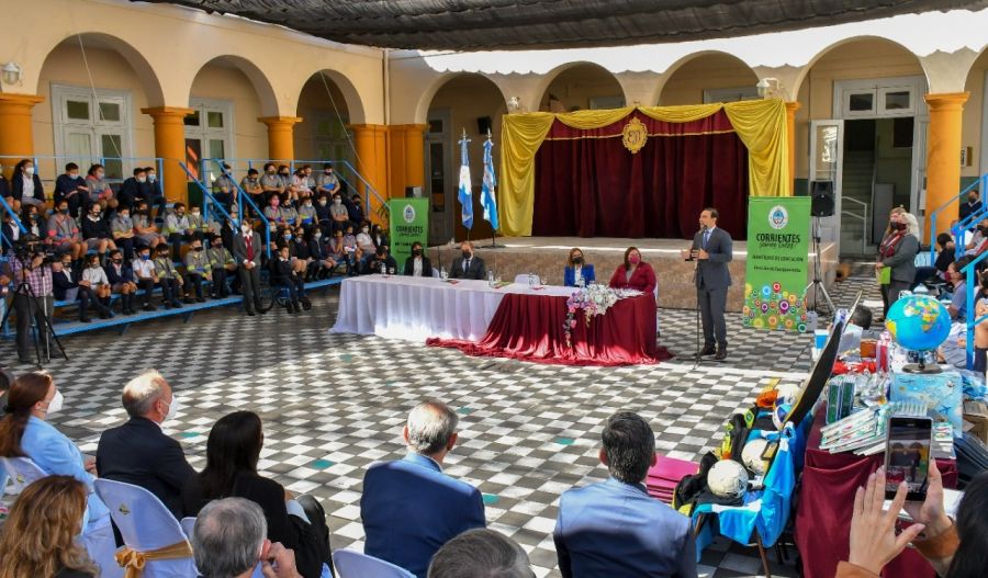“Esta Escuela emblemática tiene 130 años y es símbolo de los correntinos por su historia y tradición, y me llena de orgullo y alegría poder inaugurar hoy estas obras para que puedan disfrutar de una casa renovada”, dijo el gobernador Gustavo Valdés, en el marco del acto.