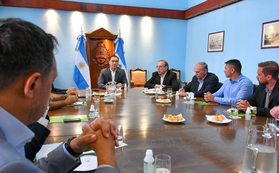 En el encuentro llevado a cabo en el Salón Azul de Casa de Gobierno, acompañaron al gobernador Valdés y el intendente Tassano, los ministros, de Obras y Servicios Públicos, Claudio Polich y de Hacienda y Finanzas, Marcelo Rivas Piasentini, el viceindentente, Emilio Lanari, demás representantes del municipio de Capital y referentes del empresariado de transporte urbano local.