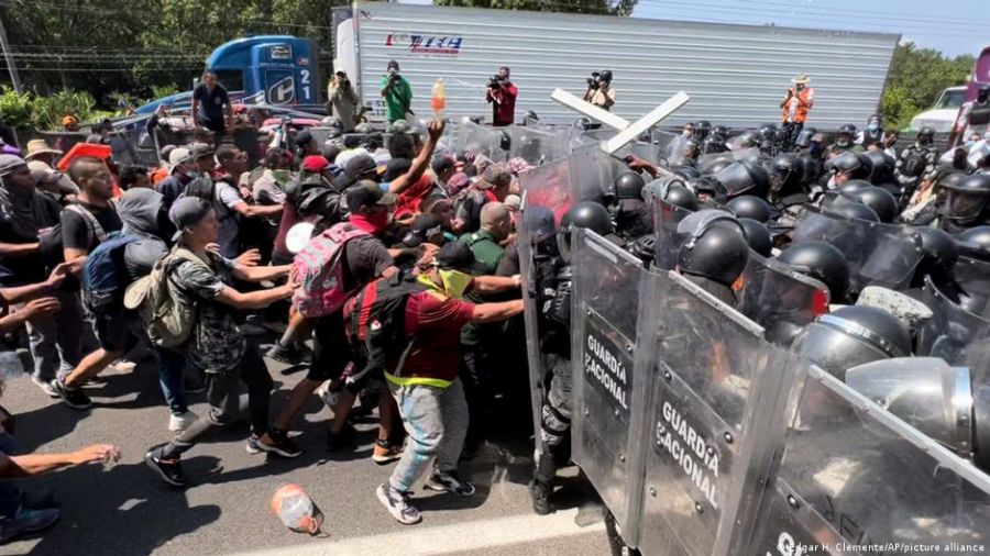 Una caravana de unos 600 migrantes, la mayoría centroamericanos, se enfrentó este viernes (01.04.2022) con piedras y palos a guardias nacionales de México, que respondieron con gases lacrimógenos, en una carretera del sureño estado de Chiapas.