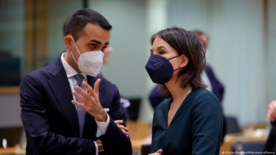 Foto: Di Maio y su homóloga alemana, Baerbock, en un encuentro de ministros de Exteriores y de Defensa y fines de marzo, en Bruselas.