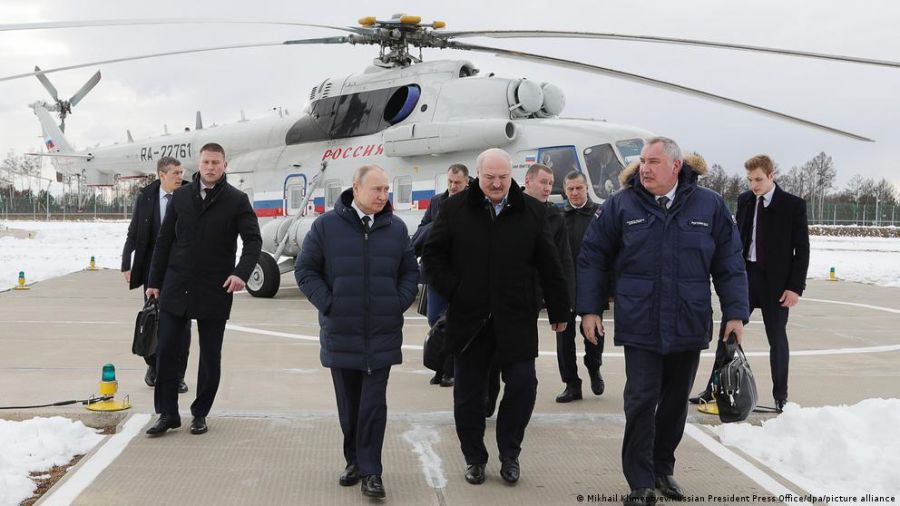 El presidente de Rusia, Vladimir Putin, el presidente de Bielorrusia, Alexander Lukashenko, llegan al cosmódromo de Vostochni, en el oriente del país.