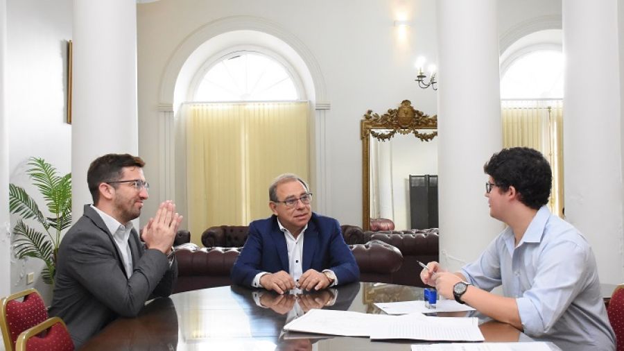 Durante la firma, realizada en el despacho del intendente y de la que tomaron parte los interventores del Ente Regulador de Agua Potable, Leopoldo Martínez y del Fideicomiso Santa Catalina, Santiago Merino, se formalizó la entrega de 36 hectáreas en la zona suroeste de la ciudad, donde ya se llevan adelante los trabajos de adecuación y construcción de la planta que, a la fecha, tiene un avance del 20 por ciento y se prevé estarán finalizadas a principios o mediados de 2024.