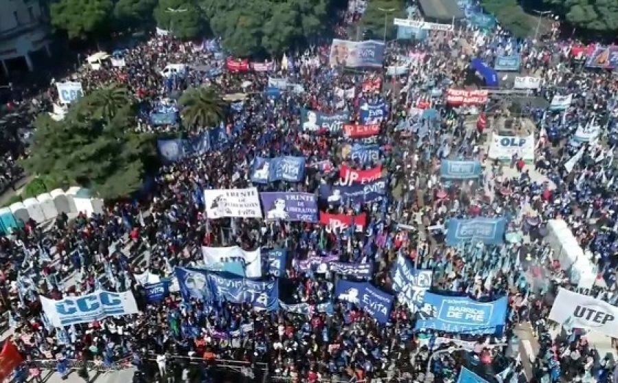 La líder de la Tupac Amaru, Milagro Sala, envió un video para respaldar la movilización, criticar al gobernador radical de Jujuy, Gerardo Morales, y reclamar por su libertad. “Seguimos siendo rehenes de Morales, el lawfare existe. La grieta está, es entre los pobres y los poderosos”, sostuvo Sala, que cumple prisión domiciliaria con una condena confirmada por la Corte Suprema y otras causas aún en trámite.