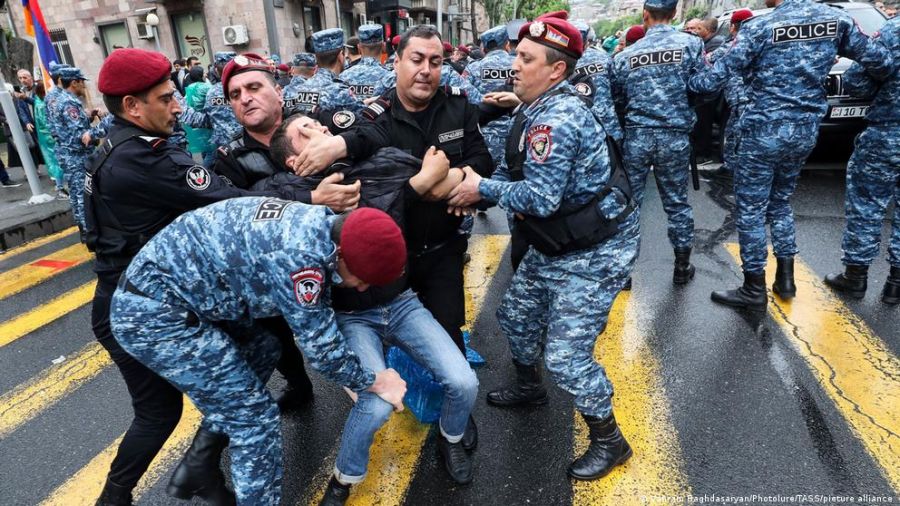 Foto: La Policía detiene por la fuerza a manifestante en Ereván.