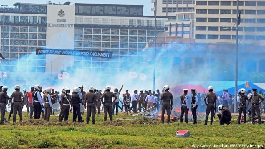 Los seguidores del bando del mandatario, armados con palos y fierros, atacaron esta jornada a los manifestantes que acampan desde el 9 de abril delante de la oficina presidencial. La policía disparó gas lacrimógeno y recurrió a cañones de agua luego de que los partidarios del gobierno franquearan las filas de las fuerzas de seguridad para destruir los campamentos de quienes exigen la partida de Rajapaksa.