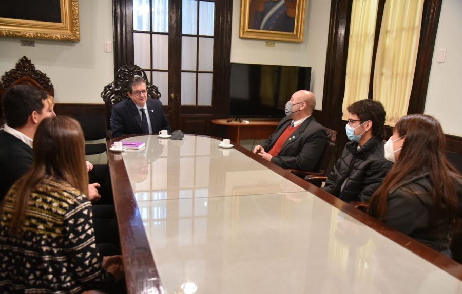 El vicegobernador Pedro Braillard Poccard recibió en la Legislatura al alumno del Colegio Secundario “Manuel Belgrano”, Santiago Rojas, quien ganó el Programa de intercambio Jóvenes Embajadores. Estuvo acompañado por el rector del establecimiento Profesor Daniel Fernández y la profesora de Inglés Belén Mieres.