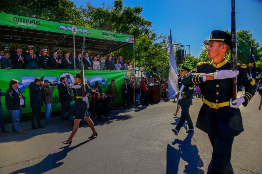 En el último y masivo evento de la jornada, desfilarán las fuerzas de seguridad mencionadas al compás de las Bandas de Música de la Policía de Corrientes y del Servicio Penitenciario Provincial, como así también 32 establecimientos escolares de los niveles inicial y primario.