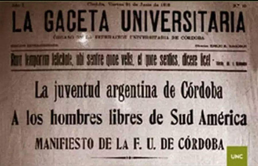 En aquel momento la Federación Universitaria de Córdoba hizo público el Manifiesto Liminar que luego se convertiría en el documento básico de la Reforma Universitaria.