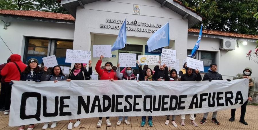 En el marco de una Jornada Nacional bajo la consigna “Que nadie se quede afuera”, jóvenes del Movimiento Sur llevaron adelante este martes una movilización hacia la sede del ministerio de Trabajo, Empleo y Seguridad Social de la Nación; en donde realizaron una intervención que consistió en pegar curriculum en la entrada de la institución.