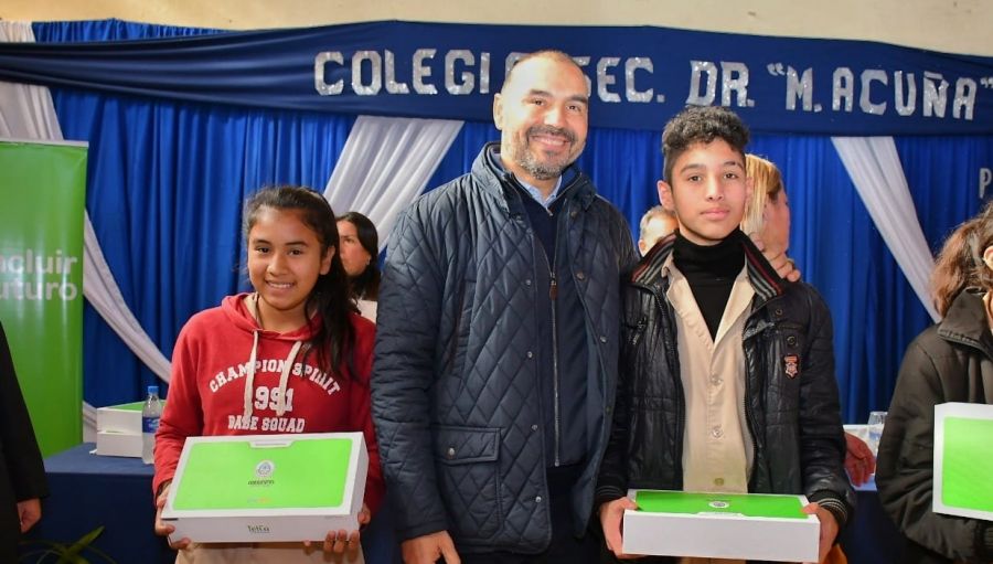 Luego las autoridades presentes entregaron las notebooks a 154 alumnos. Los colegios beneficiados con la entrega de dispositivos fueron: el anexo y el colegio secundario "Dr. Mamerto Acuña" (Esc. 602 Rural); la escuela Agrotécnica "José m. Malfussi"; y la extensión áulica que funciona en la Escuela Nº 686 (colegio secundario Dr. Mamerto acuña).