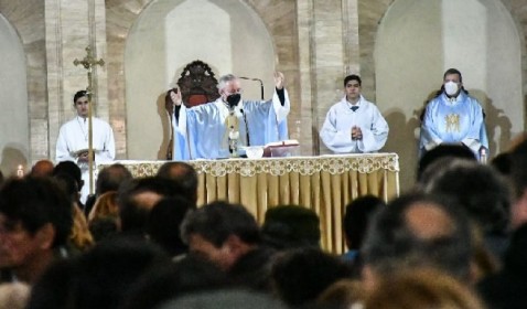 El padre Santiago Solavaggione, rector del Santuario Inmaculada Concepción de Barranqueras, Chaco, presidió la Eucaristía del primer día del Triduo de Preparación a la fiesta del 122° Aniversario de la Coronación Pontificia de Nuestra Señora de Itatí.