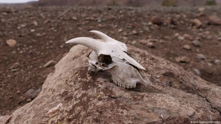 Foto: Cráneo de un animal muerto por la sequía en Chile.