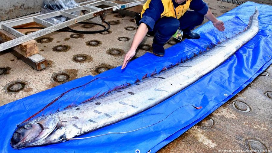 En la mitología japonesa, el pez remo está asociado a malos augurios, como sismos. Una idea que persiste hoy en día pero sin evidencia científica. Esta semana fue capturado este espécimen en las costas de Arica, Chile. Esta semana fue capturado un llamativo pez en las costas de Arica, Chile, un espécimen de seis metros de largo raramente visto en esas aguas. A través de redes sociales, se puede observar la longitud de este vertebrado que suele habitar a más de mil metros por debajo de la superficie.