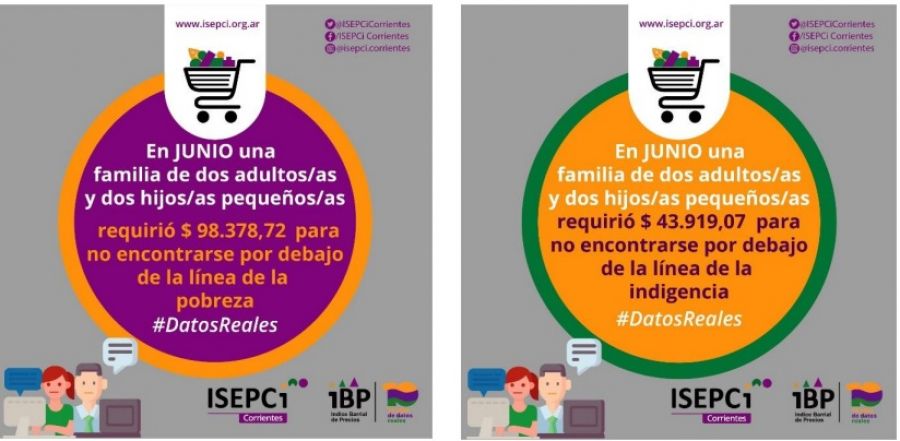 Datos del Índice Barrial de Precios (IBP) Corrientes durante el mes de junio, registran que una familia tipo de dos adultos/as y dos niños/as necesitó de $98.378,72 para acceder a la CBT (Canasta Básica Total) y no encontrarse por debajo de la línea de pobreza, mientras que para cubrir la alimentación básica durante el mes precisó de $43.919,07 para la CBA (Canasta Básica Alimentaria) y superar la indigencia.