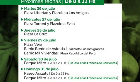 Las Ferias, coordinadas por la Dirección de Comercialización a cargo de Débora Galarza Alcaraz, se realizarán en: