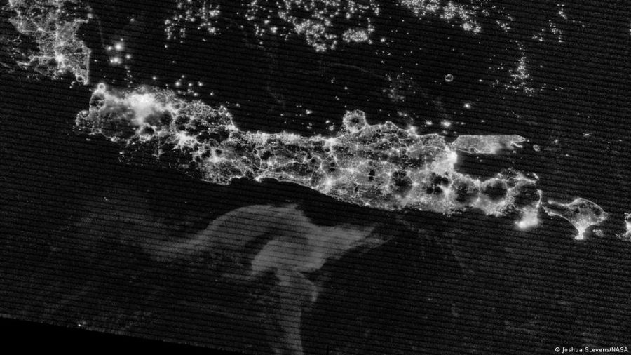 Imágenes de satélite de la noche del 2 de agosto de 2019 captan un mar lechoso bioluminiscente de 100.000 kilómetros cuadrados al sur de Java, Indonesia.