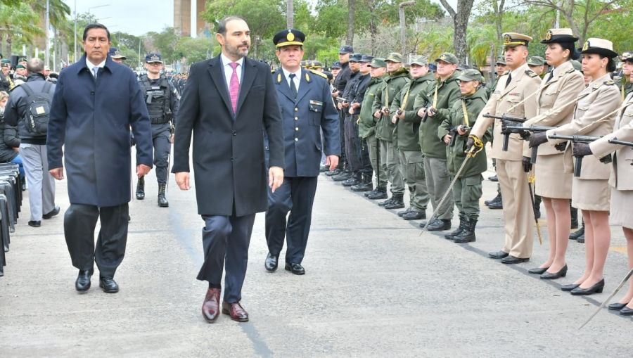El acto se inició con el saludo del gobernador Valdés, el ministro de Seguridad, Buenaventura Duarte y el Jefe de la Policía de Corrientes, Arnaldo Molina, a la Formación Especial 9 de Agosto.